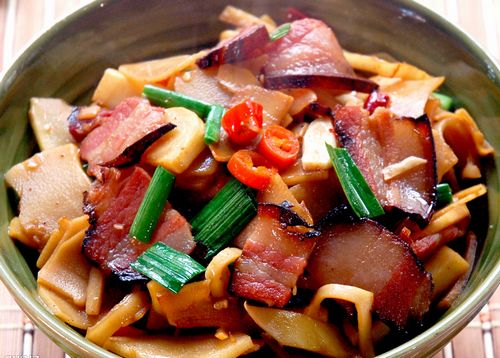 臘肉不是不能吃,但要少吃慎吃,一星期一次便可。每次最好別超過100克。蒸、煮、炒臘肉均可,但不宜高溫油炸。為防止攝入亞硝酸鹽等有害物質,在食用臘肉之前應將其浸泡洗凈,以降低有害物質的含量。
