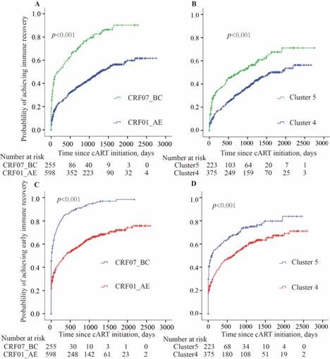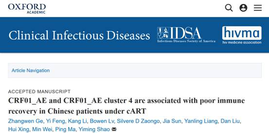 在上述研究的基礎上,邵一鳴教授研究團隊接著針對不同HIV亞型/亞簇患者進行了隨訪調查,以觀察感染者在聯合抗逆轉錄病毒治療(cART)期間的免疫恢復情況,并對相關的影響因素進行了深入分析,介紹該工作的論文已發表于國際學術期刊《臨床傳染病雜志》(Clinical Infectious Diseases)。其研究結果顯示,在接受cART治療的患者中,除基線CD4+T淋巴細胞水平和年齡等因素與免疫恢復能力相關外,CRF01_AE亞型患者與CRF07_BC亞型患者相比其免疫恢復水平更差。而在CRF01_AE亞型內部亞簇中, C4簇患者相對于 C5簇患者其免疫恢復更差。在進一步的機制研究發現,CRF01_AE和CRF01_AE C4簇患者免疫恢復更差的原因是由于兩者擁有著更高比例的X4嗜性病毒。因此為了提高我國HIV患者的治療效果,他們建議對于各地區艾滋病患者cART治療方案的制定應充分考慮當地HIV的亞型和亞簇類型,同時還指出在我國X4嗜性HIV病毒高流行區應謹慎使用CCR5抑制劑。這項研究不僅首次對中國流行的主要亞型和亞簇cART治療期間免疫恢復情況進行了深入分析,還為我國將來更加精細化HIV患者cART方案的制訂奠定了基礎。