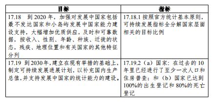 表1 SDG17,目標和與數據、監測和問責制相關的指標