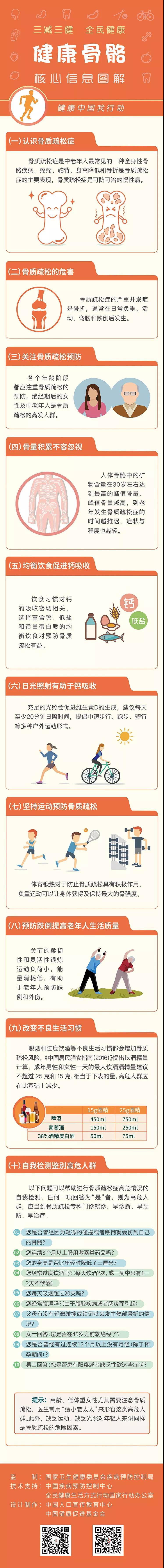 不過也別過于害怕,骨質疏松癥是可防可治的慢性病,應該堅持從生活方式入手早做預防,中老年人應早診斷、早治療。關于疾病防治的相關信息,盡在下面的“一圖讀懂”,一起去了解了解并及時行動吧!